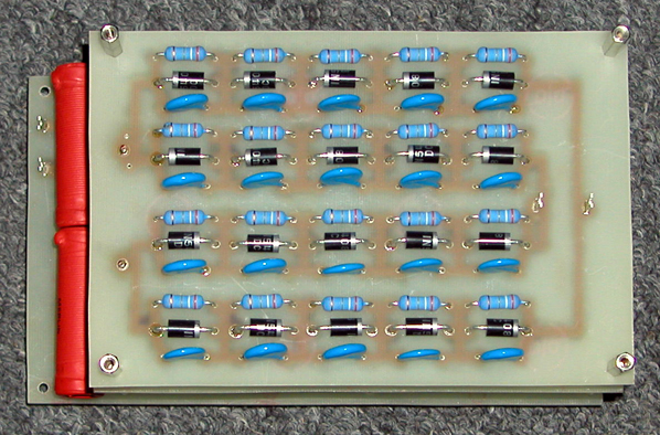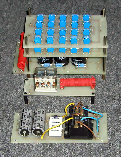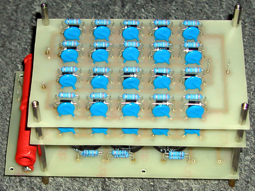 Widok płytek filtra wysokiego napięcia z elementami elektronicznymi .