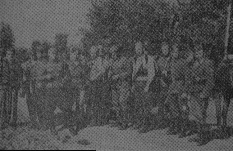 Zbiegłem z kolegami z pętli na dół i rowem dostałem się do plutonu “Enrilla”. Na środku szosy leżał “Czarny” i strzelał z LKM-u do Niemców ukrytych w ogródkach, w sadach za drzewami, w plantacjach tytoniu, za węgłami zabudowań gospodarskich. Obok w rowie leżał “Enrill” i głosem oraz znakami podciągał pluton na swoja wysokość. Krótka rozmowa z “Enrillem”. Nie można czekać aż Niemcy się zorganizują i przeciwuderzą. Natychmiast nacierać!